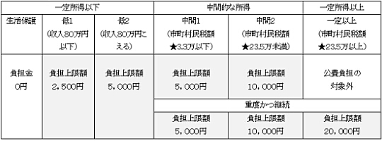 医療保険世帯の所得に応じた負担金 (詳細は裏の表を参照)
